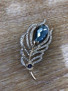 Blue Centre Stone with rhinestones and pin clasp in silver tone