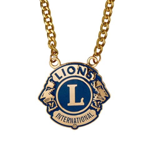 Cast 2-1/8″ diameter emblem in gold finish on heavy chain.